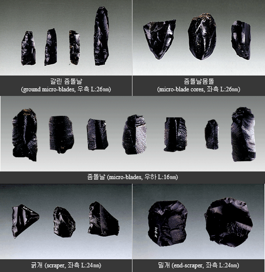 한탄강변 현무암 대지위에 자리잡은 장흥리 유적은 임진·한탄강 유역 구석기 유적 중 가장 위쪽에 자리하고 있다. 총 6개의 지층 가운데 2개의 구석기 문화층이 확인 되었는데, 유물은 주로 밝은 갈색점토 층인 1문화층에서 나왔다. 흑요석을 정교하게 잔손질하여 만든 밀개, 긁개, 좀돌날몸돌 및 좀돌날, 반암 혹은 니암 계통의 석재로 만든 슴베 찌르개, 긁개, 좀돌날몸돌, 돌날, 좀돌날 그리고 수정 뚜르개 등의 후기구석기시대 말기의 성격을 반영하는 작은 석기들이 나왔다. 이러한 유형의 석기들은 임진·한탄강 유역에서는 처음 확인되는 것이었으며, 특히 한면을 간 배모양의 좀돌날몸돌은 전혀 보고된 바 없었던 새로운 것이었다. |