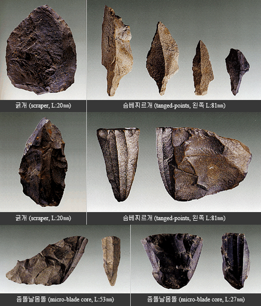 이 유적은 단양군 애곡리 남한강가에 자리 잡은 한데유적으로써, 충주댐 수몰지구 조사로 1983~1985, 1996년에 충북대학교 박물관이 발굴하였고, 2001년에도 조사지역을 확대하여 발굴을 했다. 수양개유적 에는 중기구석기에서 청동기시대에 이르는 문화층이 있음이 밝혀졌으나, 주된 층은 후기 구석기문화층 이다. 후기 구석기문화층에서는 모룻돌 및 돌망치와 함께 석기류와 몸돌, 격지 그리고 부스러기가 한 곳에 모여 있는 석기 제작소가 50군데 이상 확인되었다. 석기의 재료로는 거의 셰일을 이용하였고 흑요석 석기 가 몇 점 발굴된 것이 주목된다. 석기는 직접 떼기와 함께 간접 떼기 수법과 눌러 떼기 기술로 제작되었다. 또한 이 문화층에서는 다양한 형식의 많은 긁개류 및 밀개류와 함께 다양한 형식의 주먹도끼와 찍개류가 나왔으며, 특히 슴베찌르개와 함께 크게 3가지 형식으로 구분되는 좀돌날몸돌이 많이 나왔다. |