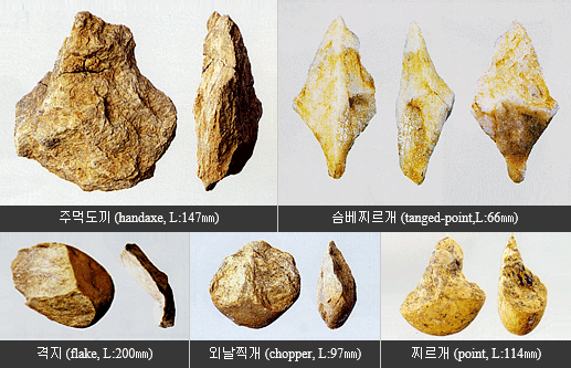 경상남도 거창군에 위치한 정장리유적은 2002년 경남발전연구원 역사문화센터에 의해 조사된 지역으로 거장분지의 중앙 구릉지에 위치하고 있다. 정장리유적의 연대는 25,700±150~29,340±700로 Ⅰ지구는 1개 의 단일문화층, Ⅱ지구는 2개의 문화층으로 나누어진다. Ⅲ지구는 전체 조사구역에서 가장 많은 유물 출토 량을 보인다. Ⅰ·Ⅱ지구에서는 확인되지 않은 유물들이 많이 출토되어 다양한 석기구성을 보이고 석기 제작장, 접합유물들이 확인되는 것이 특징이다. 석재는 대부분 유적 앞 하천일대에서 획득해 온 자갈돌을 가공한 석기들이 주류를 이루고, 석영과 규암질이 대부분이다. |