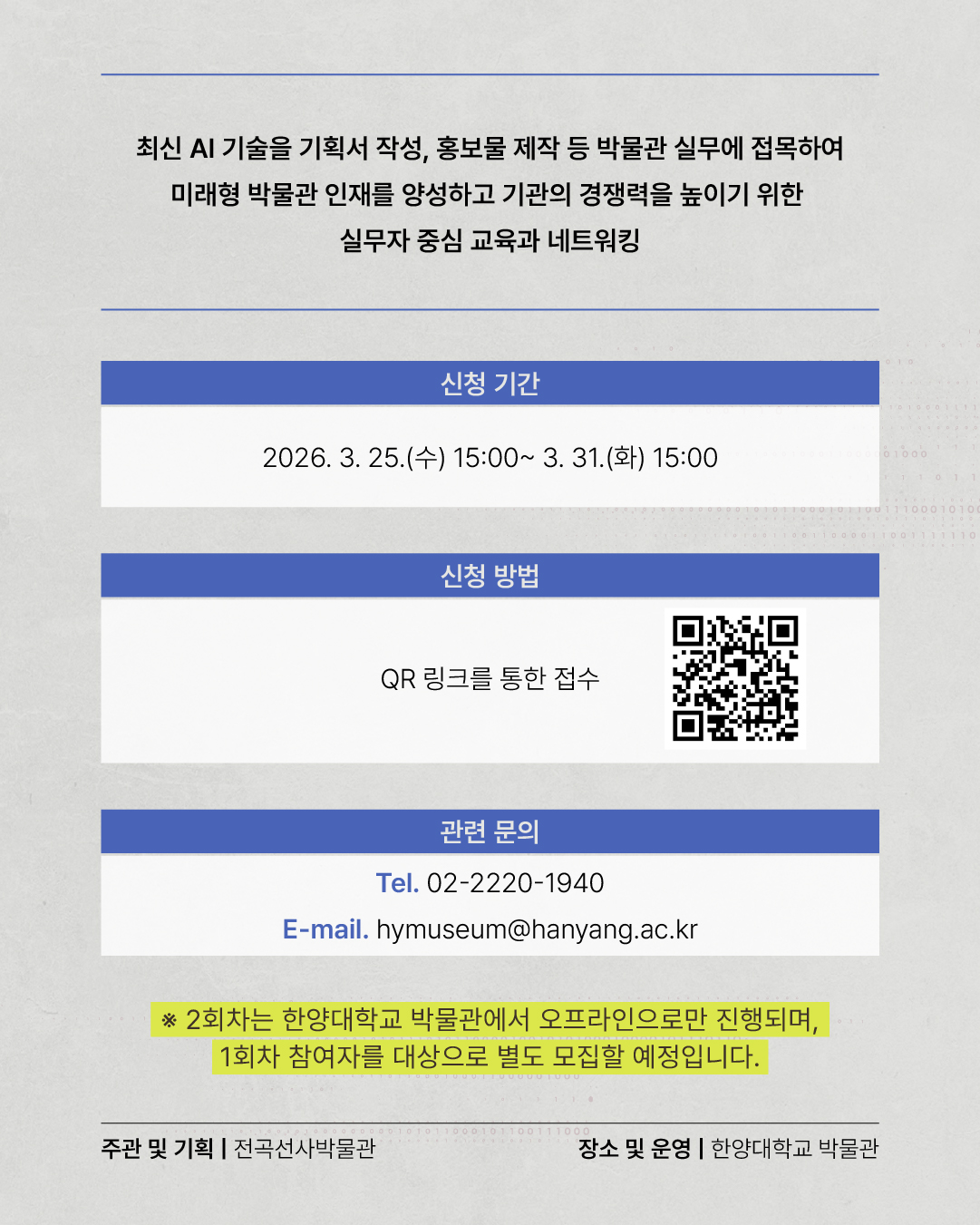 대상 국공립박물관 학예사 및 업계 관계자 접수기간 2026-03-25(수) ~ 2026-03-31(화)